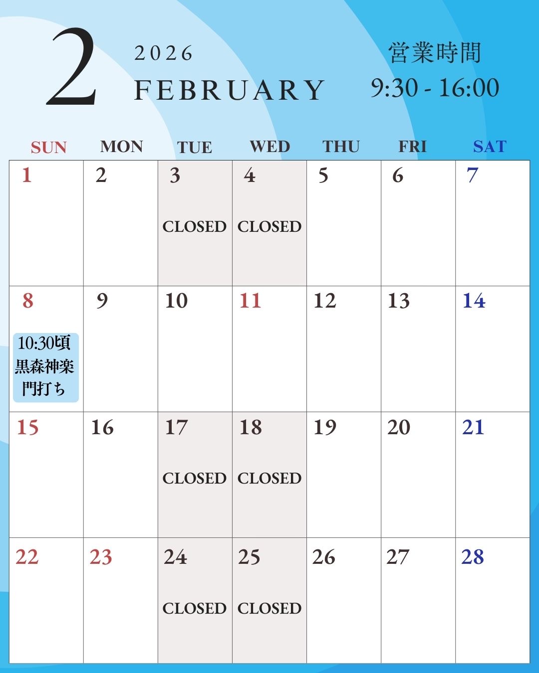 ※冬季営業時間(時短)となっております。お間違いの内容にお気を付けください。
